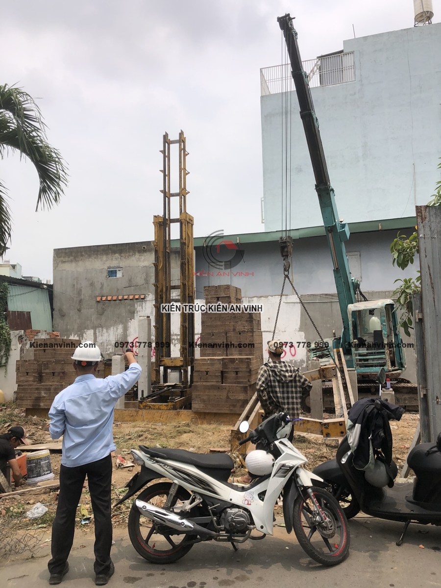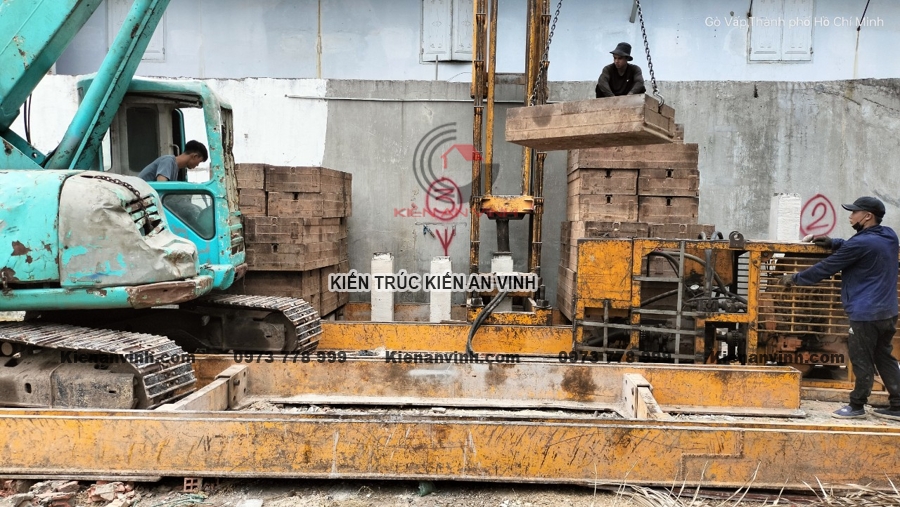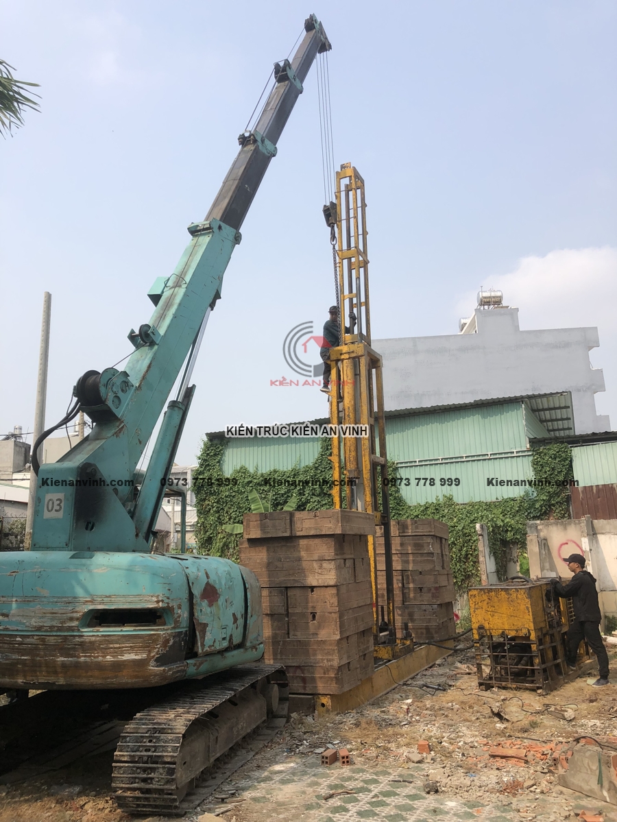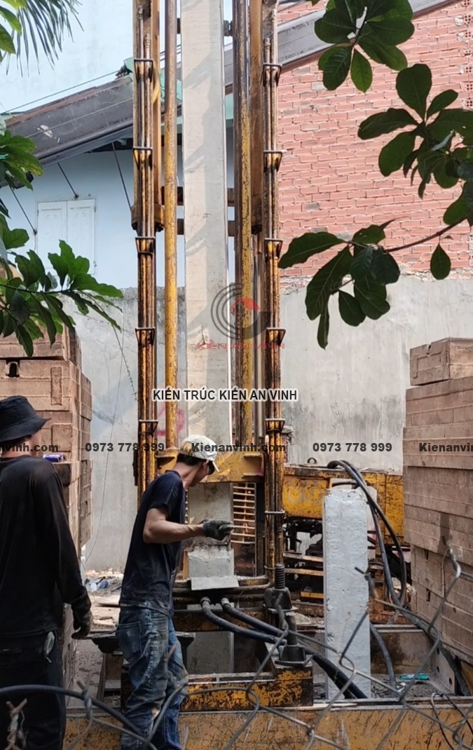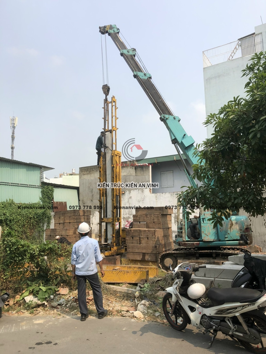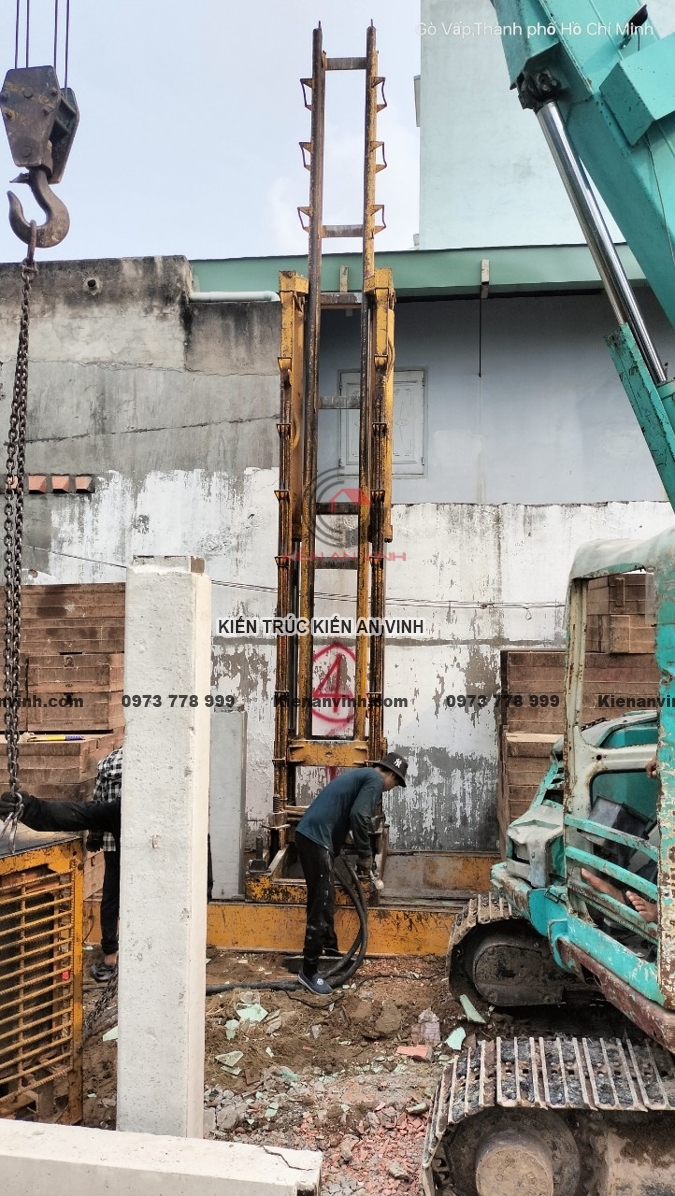 Ép cọc và đảm bảo nền móng vững chắc cho nhà ống 3 tầng 2 mặt tiền