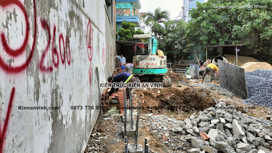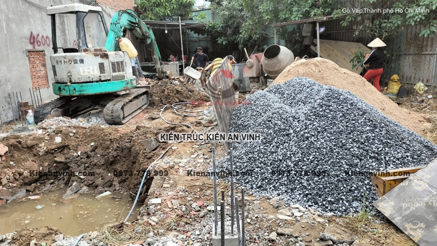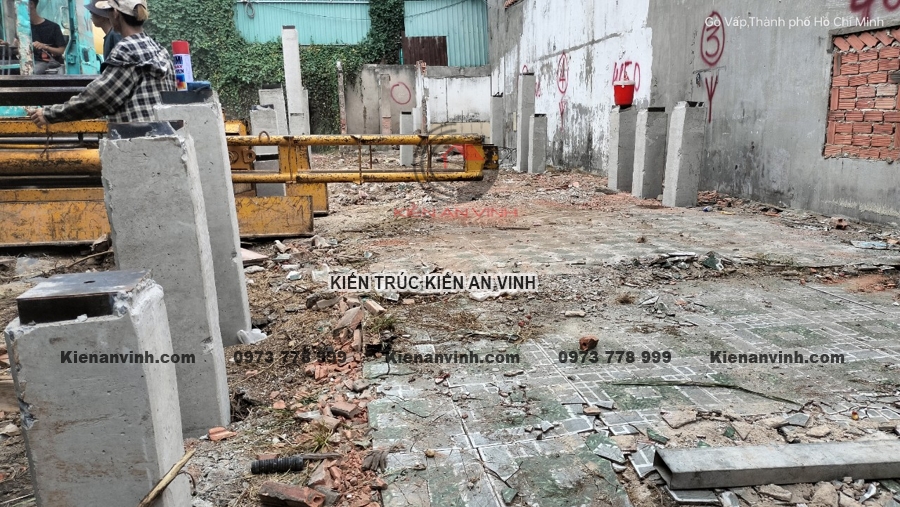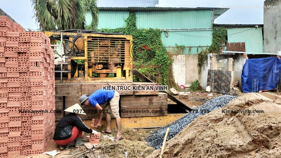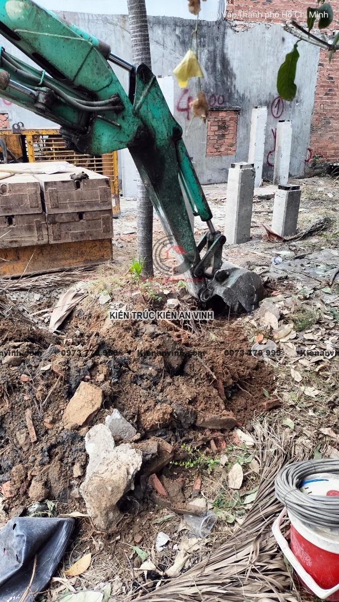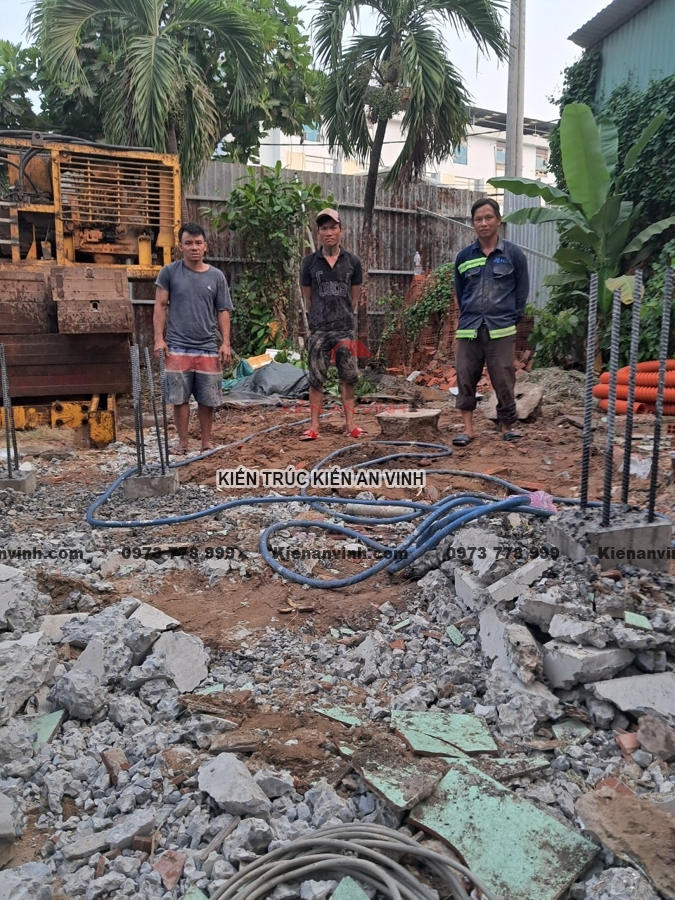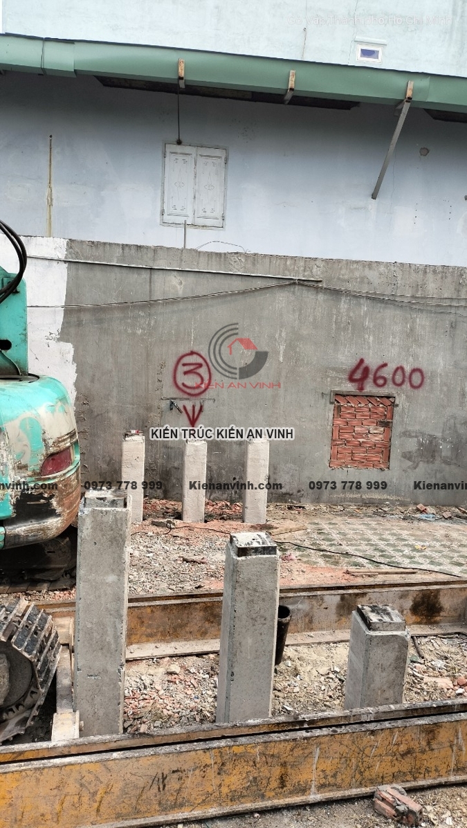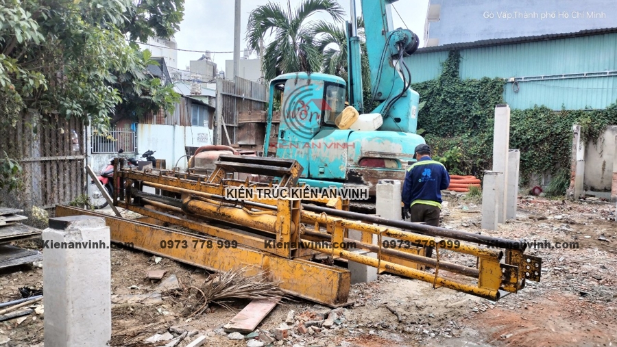Ép cọc và đảm bảo nền móng vững chắc cho nhà ống 3 tầng 2 mặt tiền