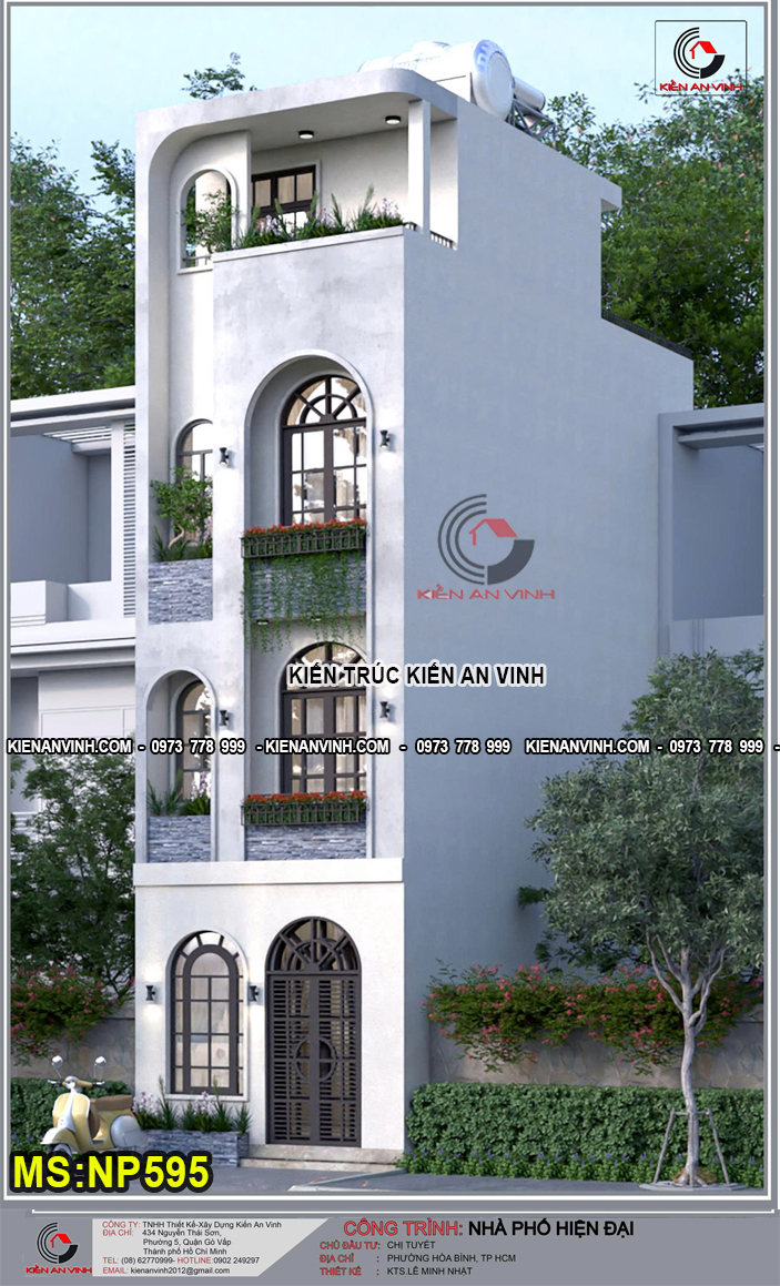 Bằng sự kết hợp hài hòa giữa không gian sống tối ưu, phong cách hiện đại có điểm nhấn cửa vòm mềm mại đặc trưng châu Âu, cùng sân vườn nhỏ giúp thông gió và trồng cây xanh, mẫu thiết kế nhà ống hiện đại 3 tầng 1 tum 4x10m ở Phường Hòa Bình là lựa chọn hoàn hảo dành cho gia đình trẻ.