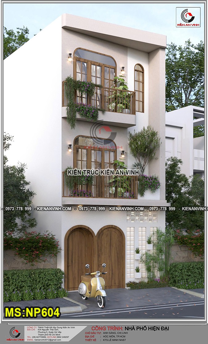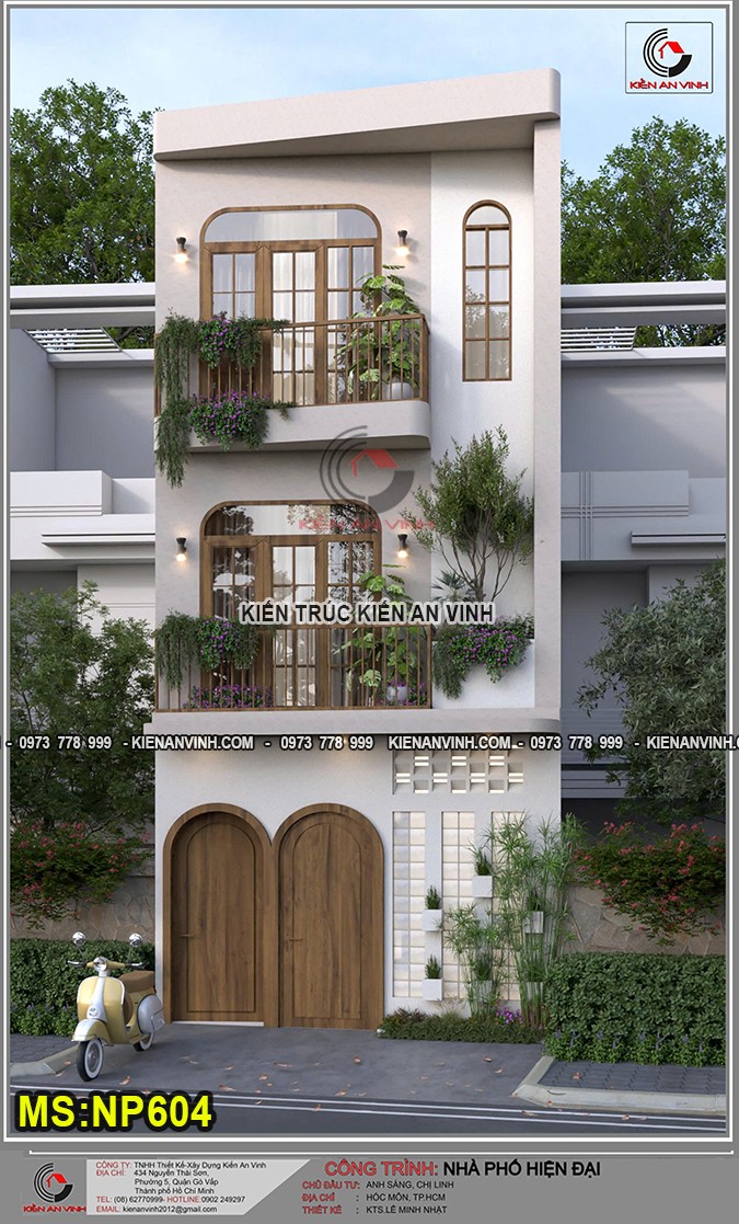 Nhà ống 3 tầng kích thước 5x17m với phong cách hiện đại, tối giản nhưng đầy ấm cúng là một mô hình lý tưởng cho những gia đình trẻ đang tìm kiếm không gian sống tiện nghi và gần gũi thiên nhiên. Từ thiết kế mặt tiền trắng kem kết hợp gỗ tự nhiên, khu vực để xe tầng trệt, cửa chính vòm cong đôi độc đáo, ban công rộng rãi nhiều cây xanh, đến sân vườn mini phía sau, tất cả đã tạo nên một tổng thể hài hòa, sáng tạo và vô cùng tiện ích. Đây chắc chắn là giải pháp nhà ở hoàn hảo, giúp nâng tầm chất lượng cuộc sống và kiến tạo một không gian xanh lý tưởng giữa đô thị phồn hoa.