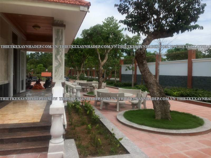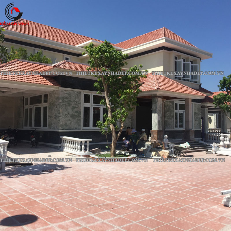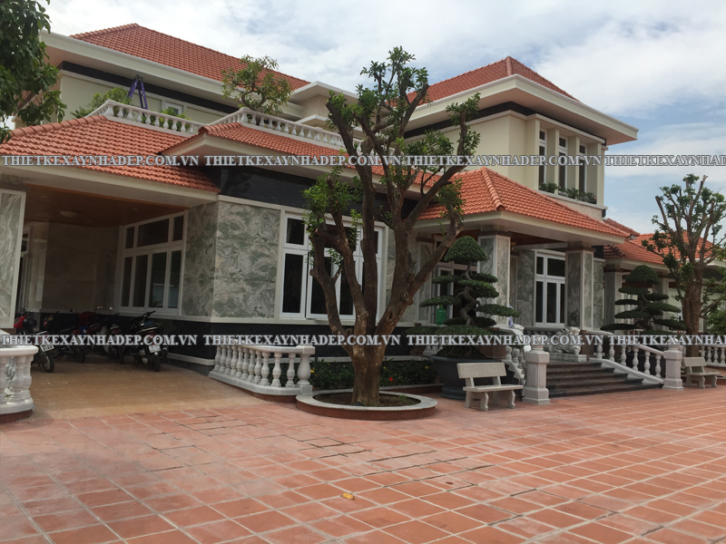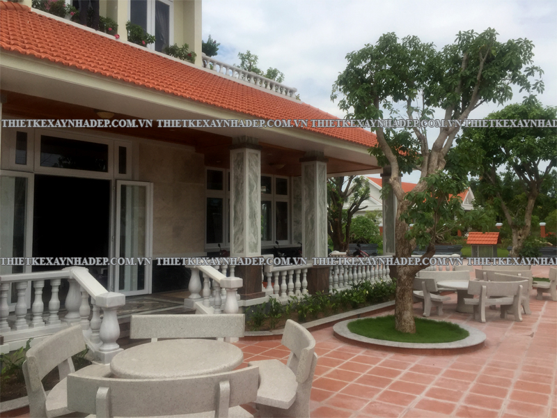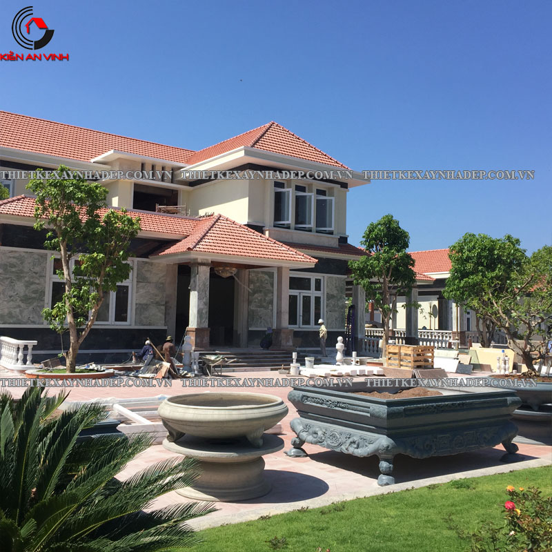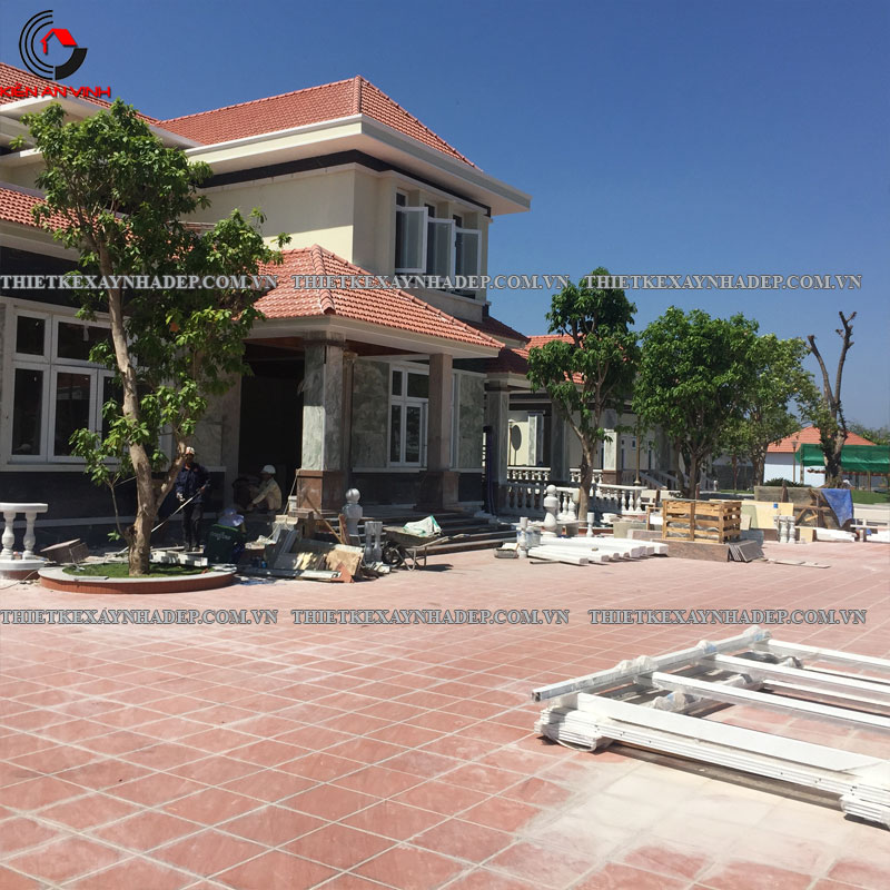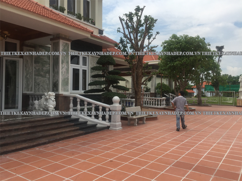 Thi công biệt thự 2 tầng mái nhật 24x20m có sân vườn & Nhà chòi vườn ở Châu Pha