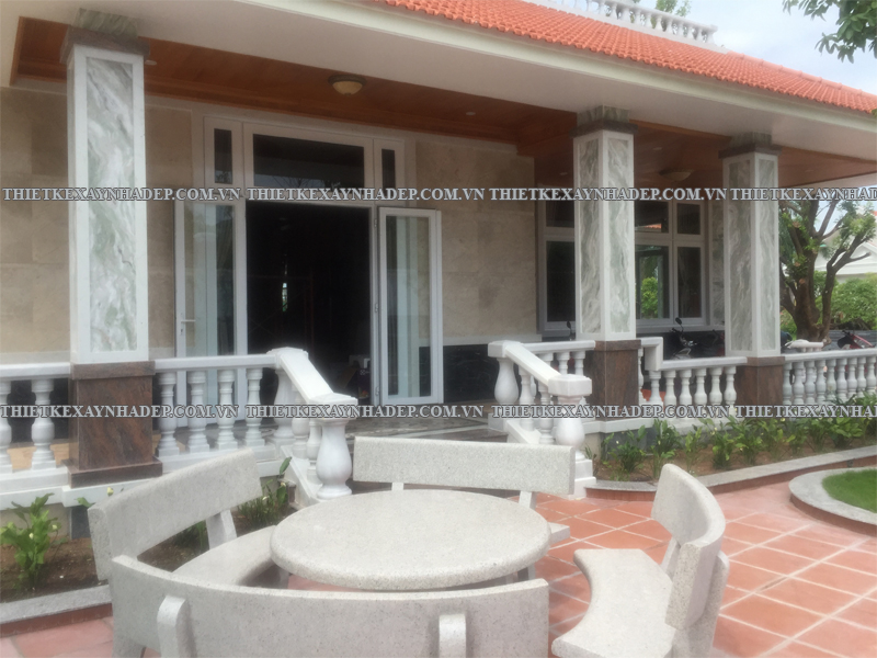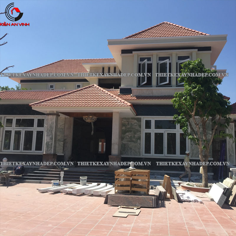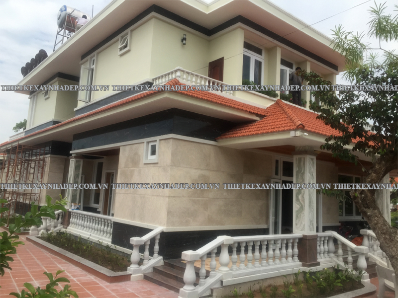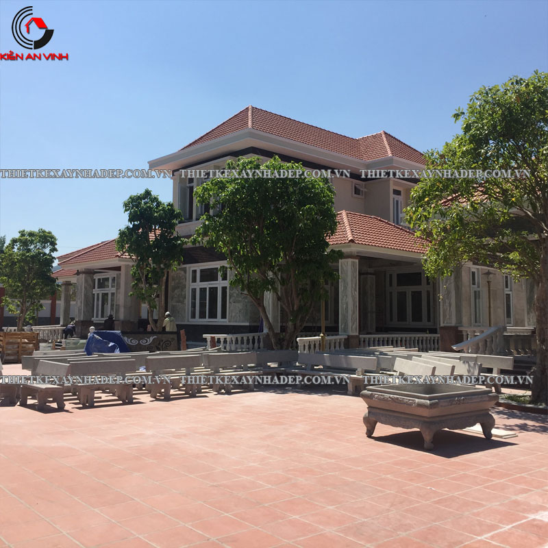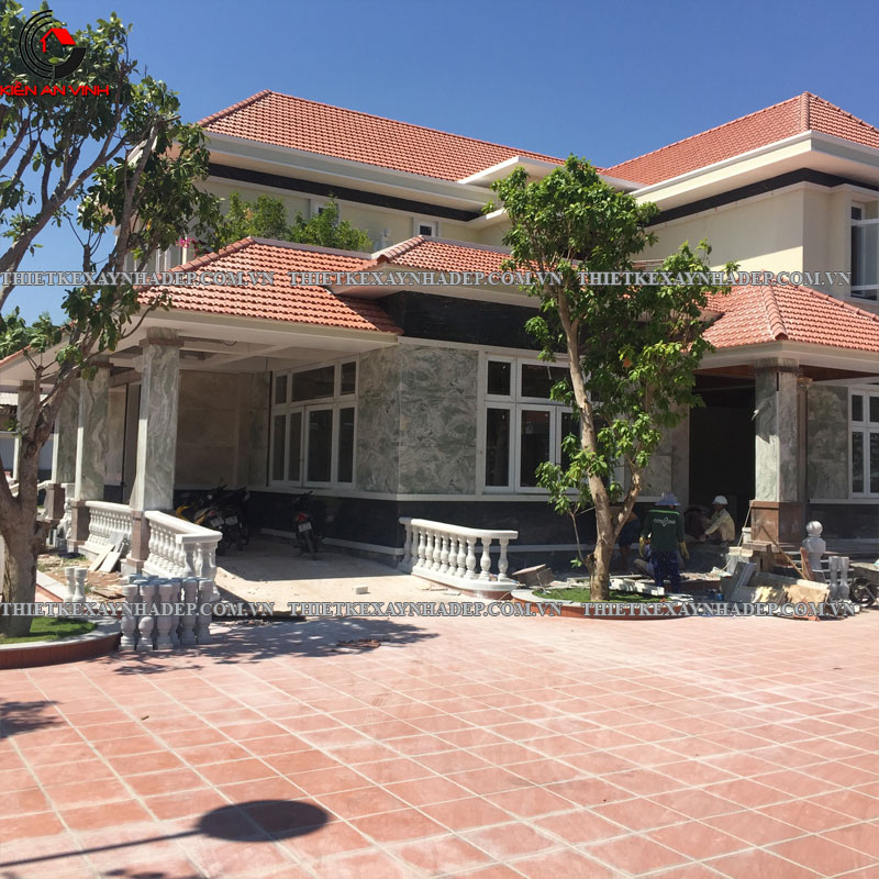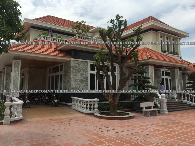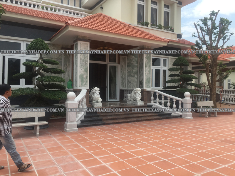 Thi công biệt thự 2 tầng mái nhật 24x20m có sân vườn & Nhà chòi vườn ở Châu Pha