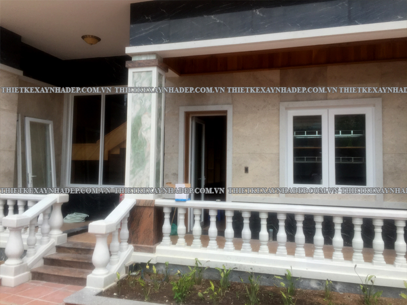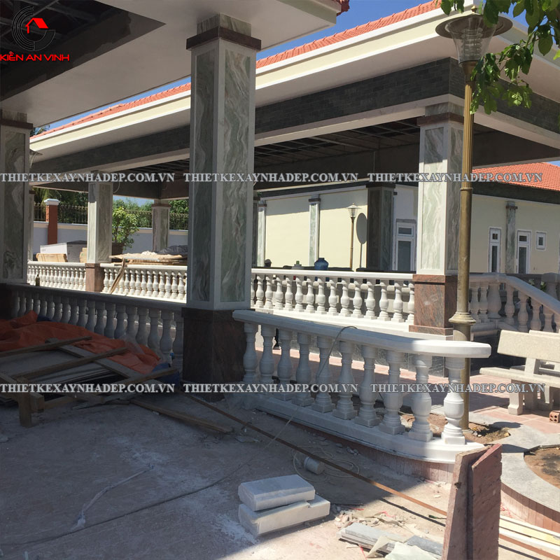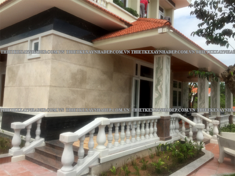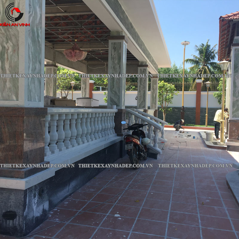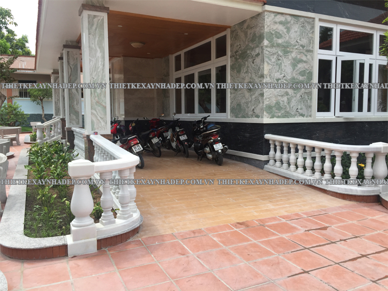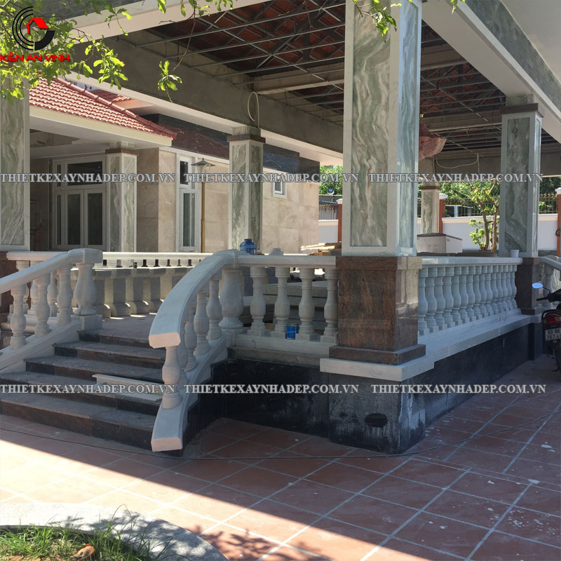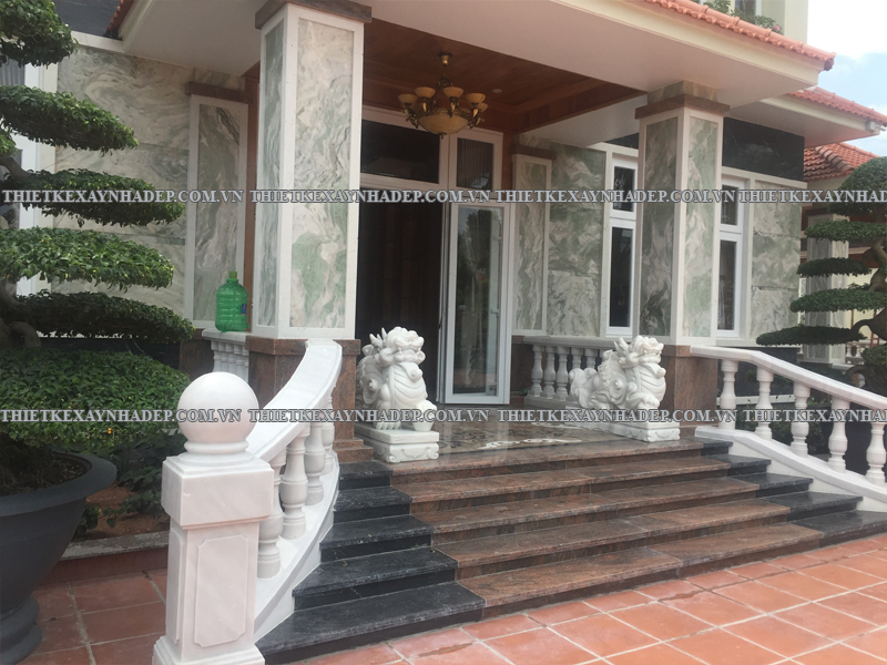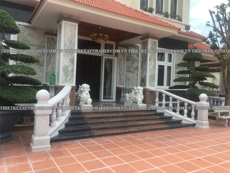Phần hiên trước nhà và bậc tam cấp là điểm kết nối giữa sân vườn và không gian bên trong biệt thự, đồng thời góp phần thể hiện sự uy nghi, sang trọng qua các chi tiết trang trí và vật liệu thi công.