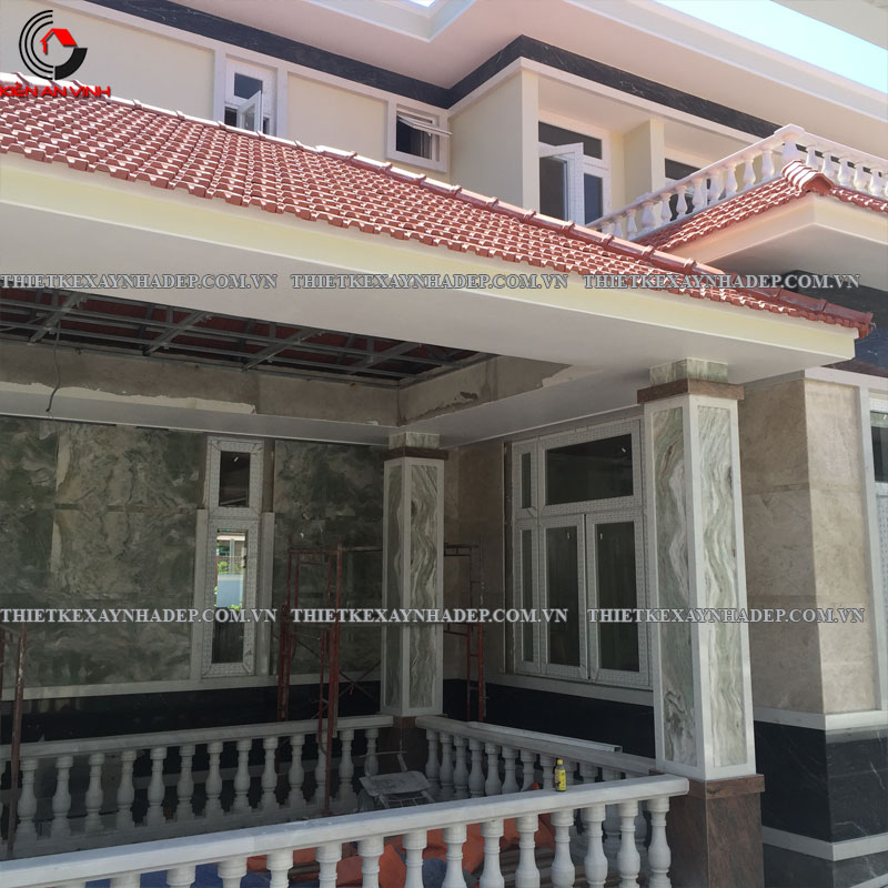 Thi công phần thô biệt thự mái thái 2 tầng tân cổ điển tối giản điển hình như dự án...