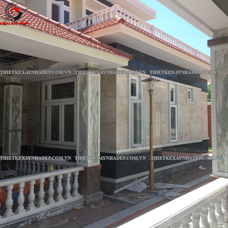 Bên cạnh đó, kiến trúc mái và cột còn giúp cân bằng tỷ lệ và tỷ vị cho mặt tiền biệt thự, tạo nên hình thái vừa hài hòa vừa sang trọng, hợp thị hiếu hiện đại và trường tồn cùng thời gian.