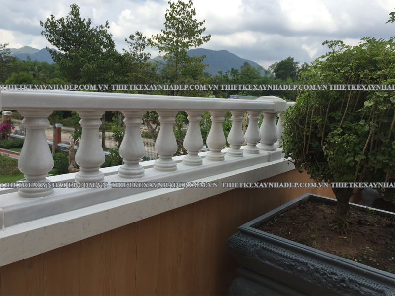 Ban công được thiết kế rộng rãi đủ chỗ để bố trí bộ bàn ghế thư giãn hoặc chậu cây cảnh. Lan can ban công được làm bằng bê tông chắc chắn, tạo hình theo phong cách tân cổ điển uốn lượn nhẹ nhàng, vừa đảm bảo an toàn vừa tăng tính thẩm mỹ.