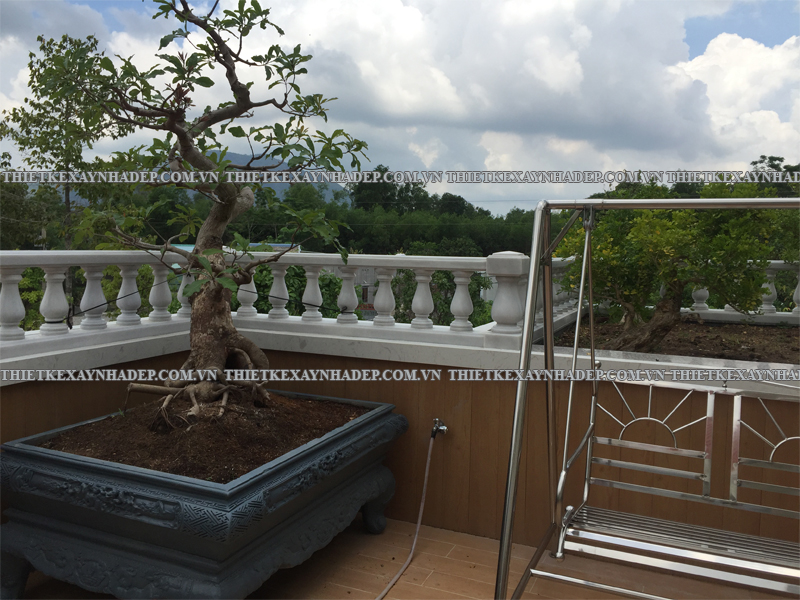 Ban công tầng 2 của biệt thự không chỉ là nơi thoáng đãng đem lại tầm nhìn đẹp mà còn là không gian xanh mát khi được bố trí cây cảnh, hoa lá, tạo sự gần gũi thiên nhiên đặc trưng cho thi công biệt thự vườn 2 tầng mái nhật ban công & hiên.