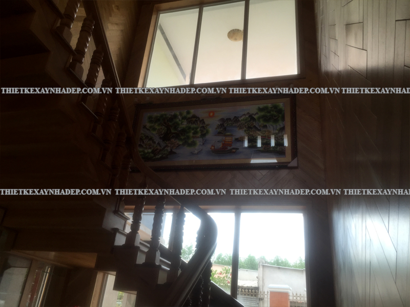 Cầu thang là chi tiết nội thất kết nối hai tầng, được thiết kế bằng gỗ tự nhiên, với tay vịn chắc chắn đảm bảo an toàn. Các bậc thang có khoảng cách hợp lý, kết cấu vững vàng phù hợp với vị trí lưu thông quan trọng.