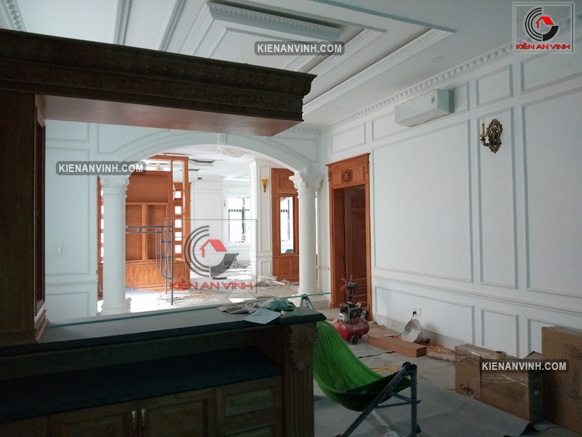 Đường nét mềm mại của các cột tròn, họa tiết phào chỉ tinh tế được lựa chọn kỹ càng để tạo nên sức hút riêng. Các cột tròn không chỉ đóng vai trò kết cấu mà còn là cửa ngõ hình ảnh cho sự sang trọng, bề thế.