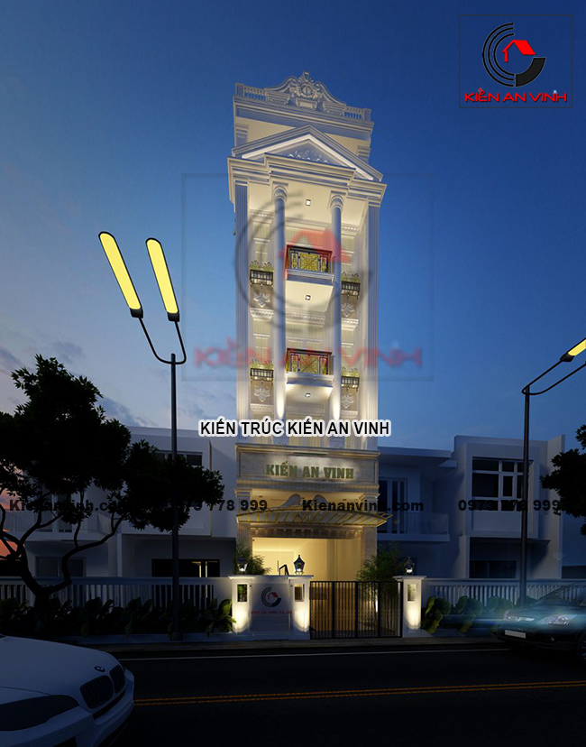 Việc thi công nhà ống tân cổ điển 5 tầng có tầng hầm là sự kết hợp hoàn hảo của các yếu tố kiến trúc cổ điển tinh tế cùng công năng hiện đại, đáp ứng tối đa nhu cầu sử dụng của doanh nghiệp. Từ quy mô công trình, mặt tiền trắng sang trọng, hệ cột tròn bề thế, phào chỉ tinh tế, ban công sắt mỹ thuật cho đến tầng hầm rộng rãi, hệ cửa kính lớn và mái trang trí hoa văn đều góp phần tạo nên dấu ấn đẳng cấp và chuyên nghiệp cho trụ sở công ty.
