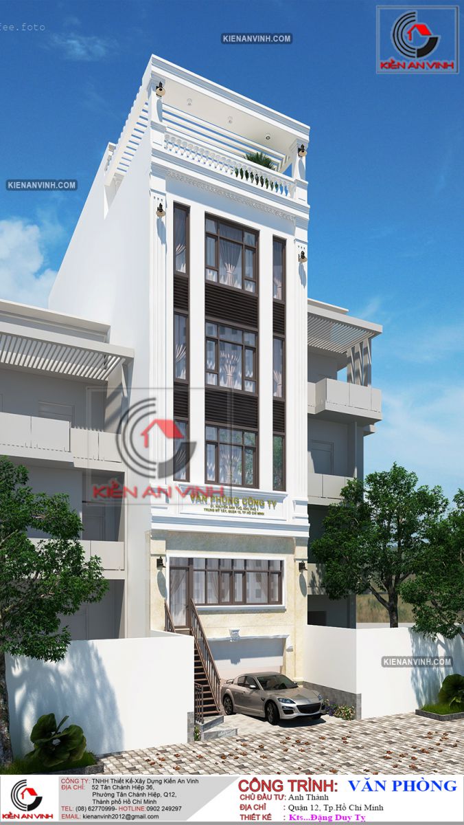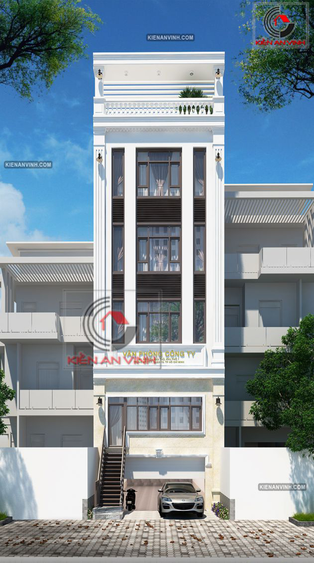 Kiến trúc hiện đại và sang trọng: Điểm nhấn của công trình nhà ở kết hợp văn phòng 4 tầng 1 tum có tầng hầm
