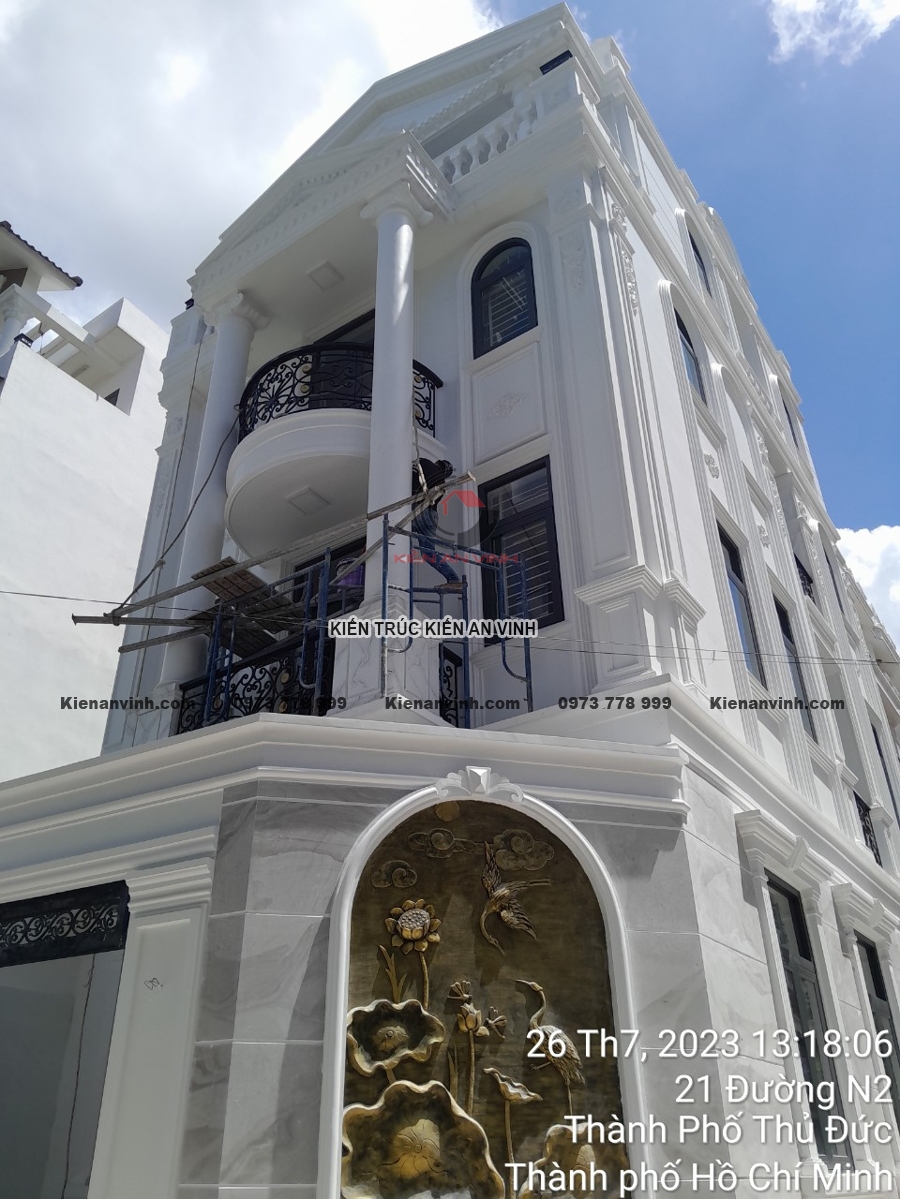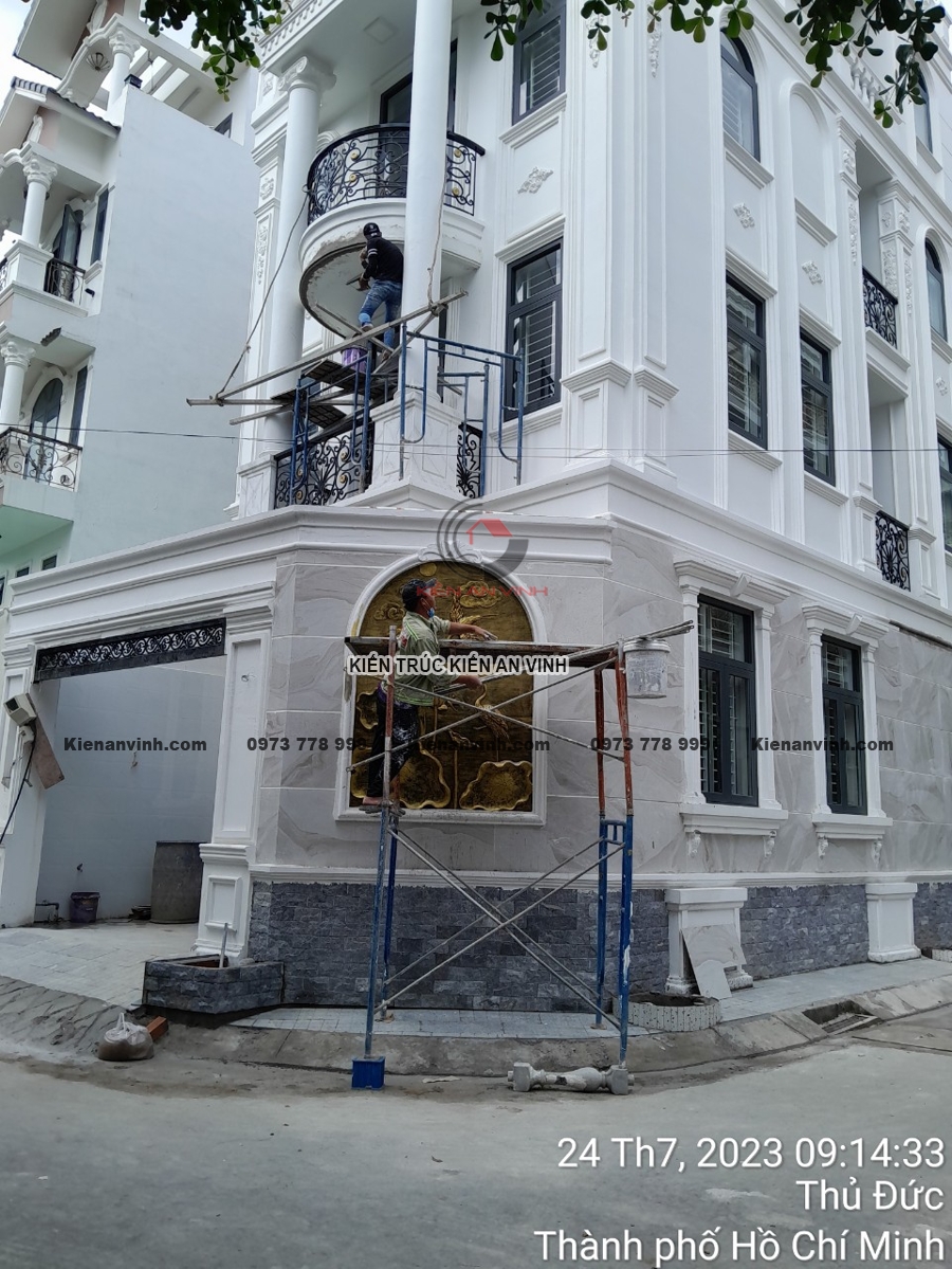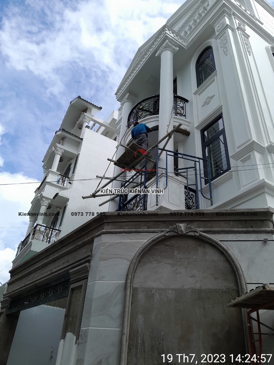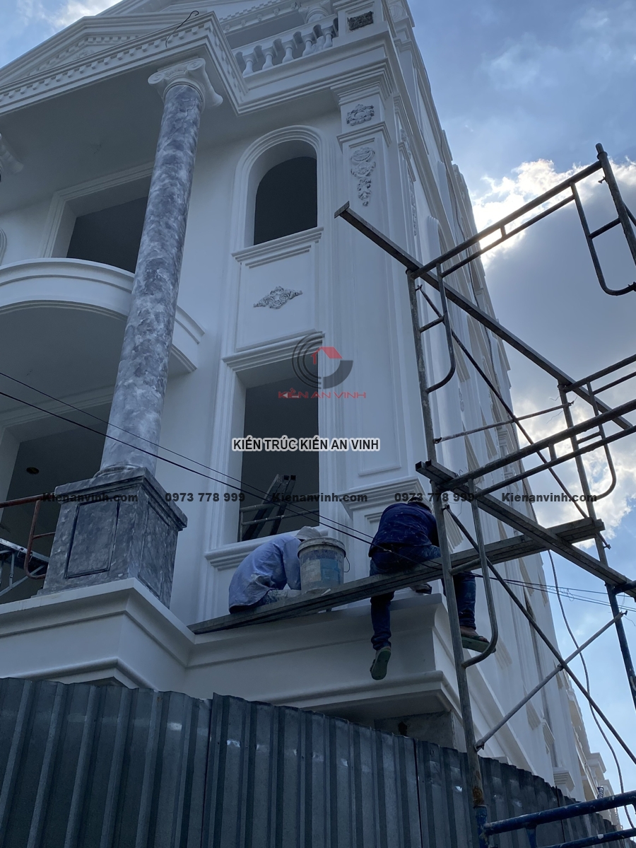 Mỗi bức tường, từng mảng tường phào chỉ, góc ban công đều được hoàn thiện tỉ mỉ để tránh những lỗi nhỏ như nứt, phồng rộp hay lệch tông màu. Sự phối hợp giữa các chi tiết hoàn thiện giúp công trình nhà phố tân cổ điển trở nên tinh tế, sang trọng, mang lại trải nghiệm không gian sống lý tưởng.