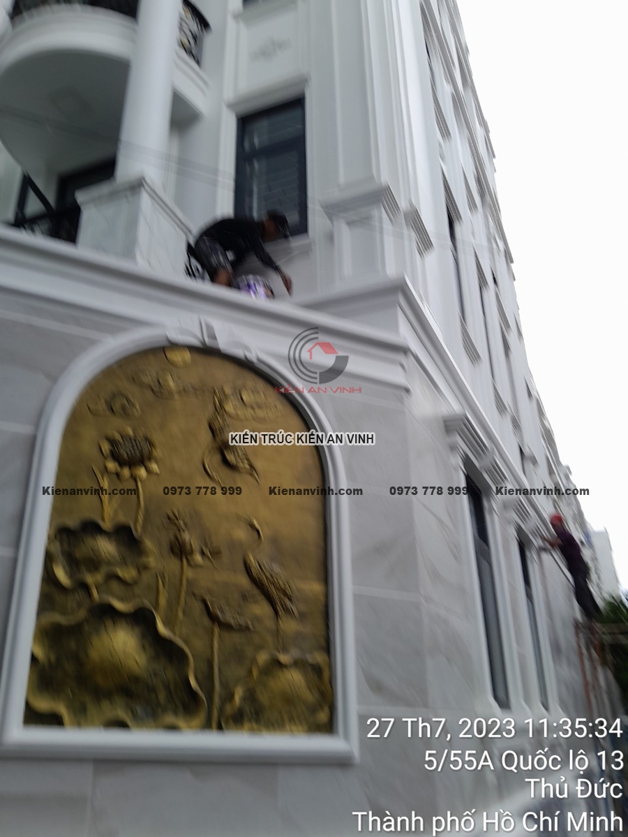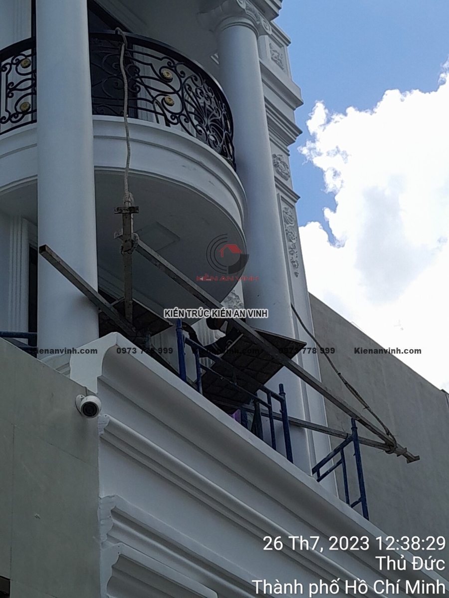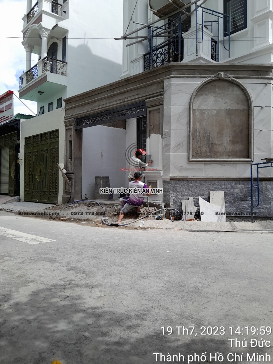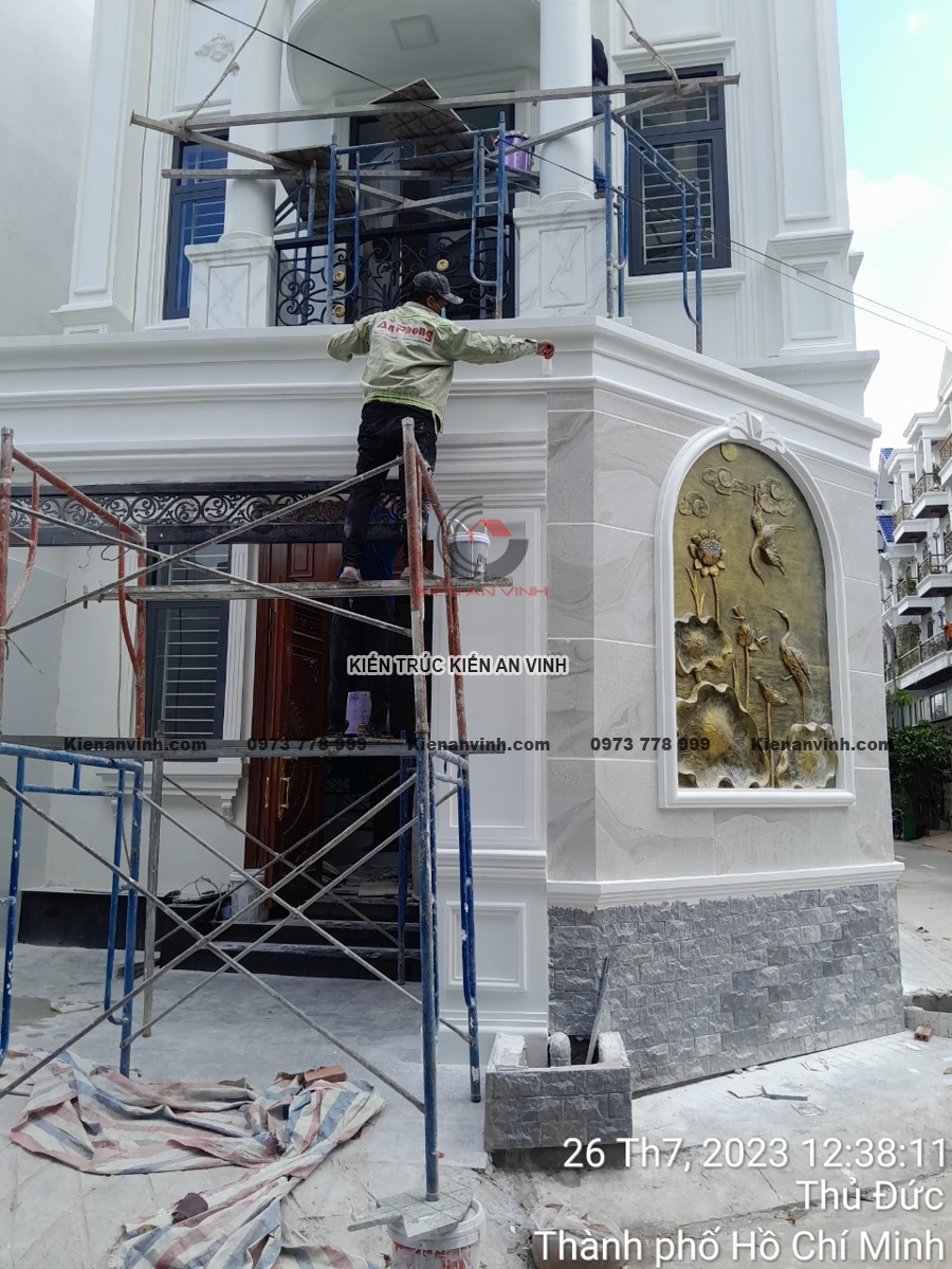 Mỗi bức tường, từng mảng tường phào chỉ, góc ban công đều được hoàn thiện tỉ mỉ để tránh những lỗi nhỏ như nứt, phồng rộp hay lệch tông màu. Sự phối hợp giữa các chi tiết hoàn thiện giúp công trình nhà phố tân cổ điển trở nên tinh tế, sang trọng, mang lại trải nghiệm không gian sống lý tưởng.
