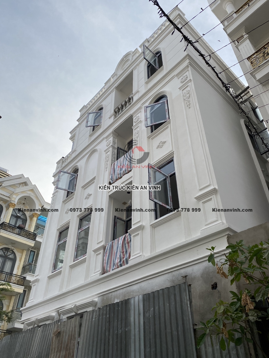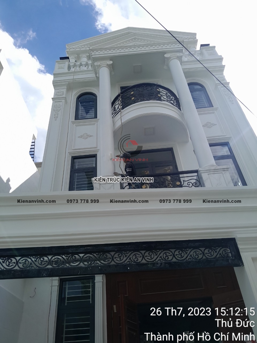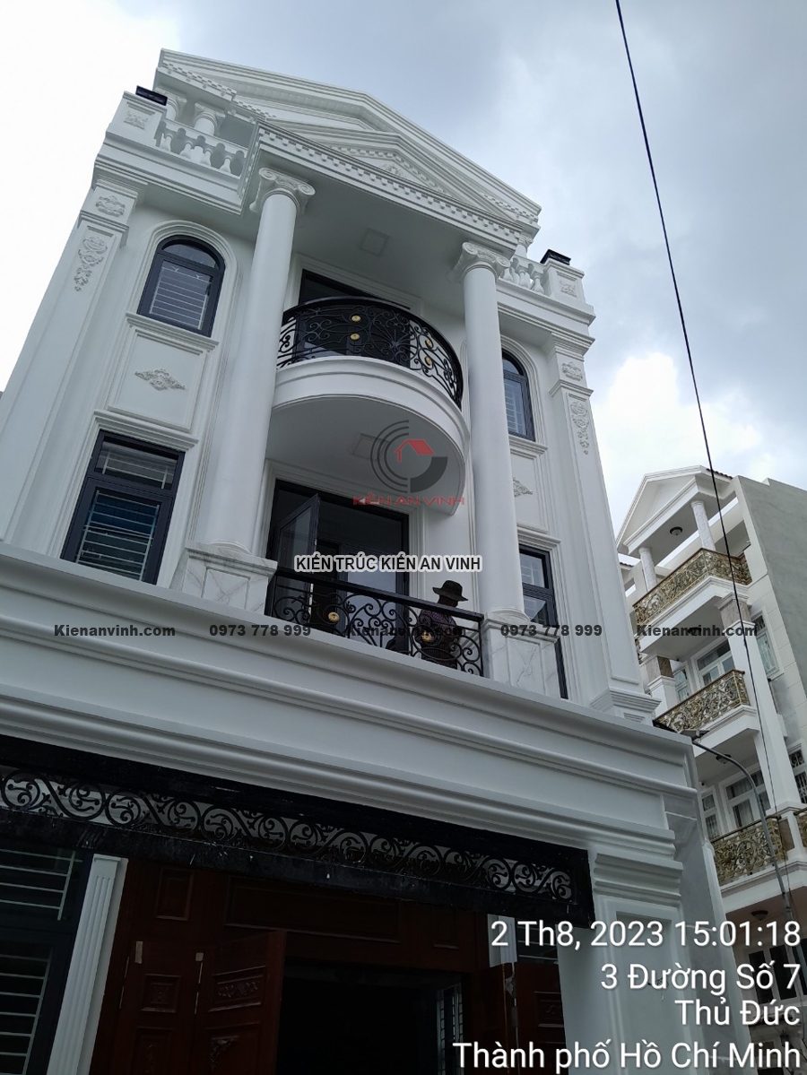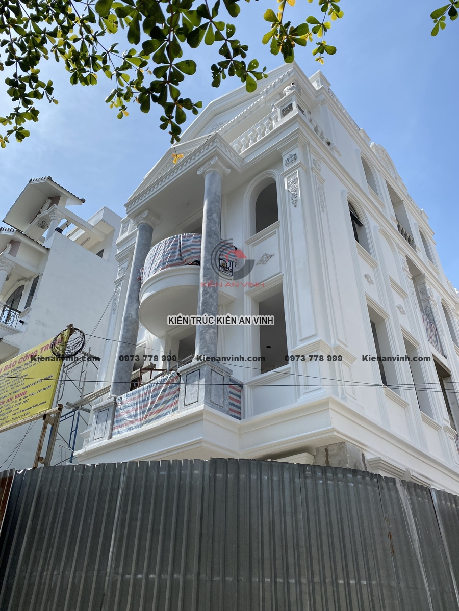 Không chỉ đẹp về kiến trúc với hệ cột tròn, phào chỉ và ban công uốn cong mềm mại, mặt tiền nổi bật gam màu trắng tinh tế cùng đá ốp sang trọng, mà còn đảm bảo công năng, thẩm mỹ và độ bền đáng kinh ngạc. Công trình nhà phố tân cổ điển 4 tầng này thực sự là minh chứng cho sự kết hợp hoàn hảo giữa nghệ thuật kiến trúc và kỹ thuật xây dựng bền vững, mang lại không gian sống đẳng cấp giữa lòng đô thị hiện đại.