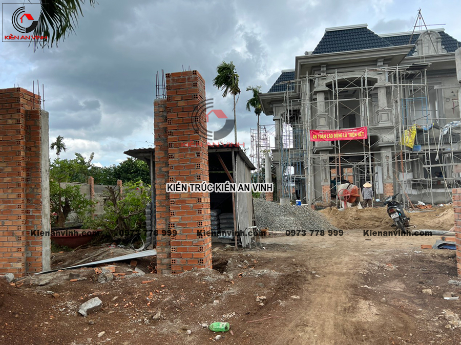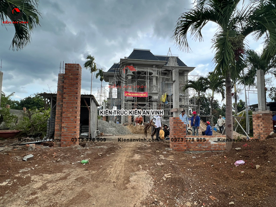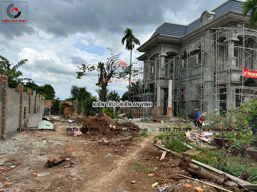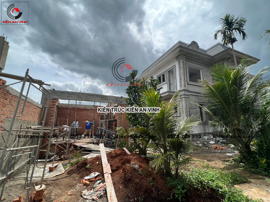 Thi công phần thô biệt thự mái thái 2 tầng tân cổ điển tối giản 8x15m có kết hợp quán cafe ở Bến LứcThi công phần thô biệt thự mái thái 2 tầng tân cổ điển tối giản điển hình như dự án...