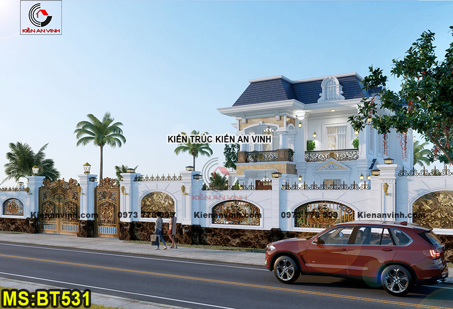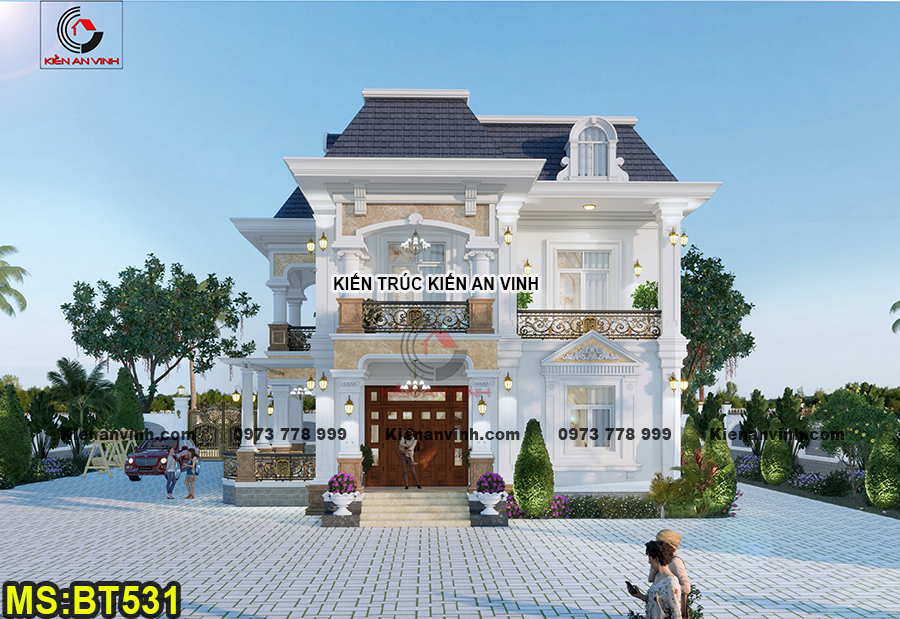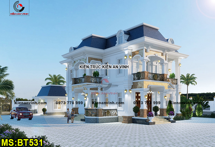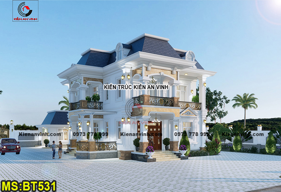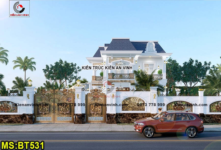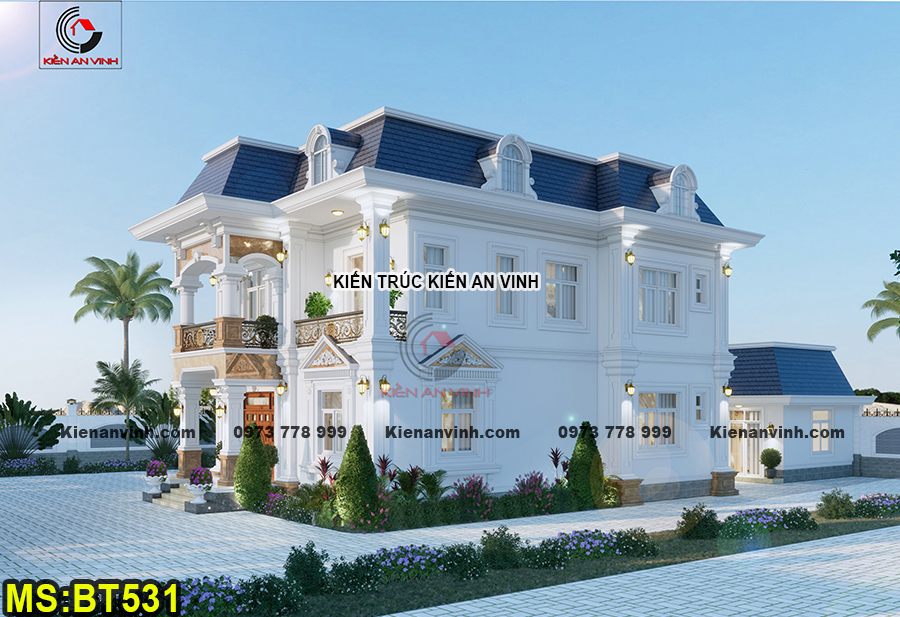 Biệt thự được xây dựng với quy mô 2 tầng bề thế theo phong cách tân cổ điển Pháp, kết hợp hệ mái Mansard đặc trưng và 6 phòng ngủ tiện nghi. Phong cách này mang đậm tinh thần hoài cổ kết hợp với sự hiện đại, đề cao sự cân đối, đối xứng trong bố cục kiến trúc. Từng chi tiết đều được thiết kế công phu nhằm đem lại vẻ đẹp thanh lịch và sang trọng vượt thời gian.