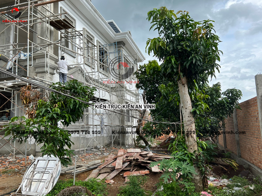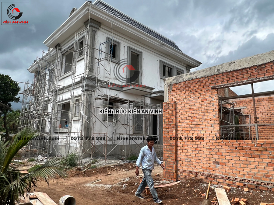 Ở giai đoạn này, công việc chế tạo khung bê tông cốt thép, thi công hệ thống cột trụ, xây dựng tường bao và tường ngăn phòng, cũng như tạo hình chi tiết mái đều được tiến hành đồng bộ, chặt chẽ. Đây chính là nền móng để phần hoàn thiện có thể triển khai nhanh chóng và thuận lợi, đồng thời thể hiện rõ nét các giá trị kiến trúc của biệt thự tân cổ điển mái mansard.