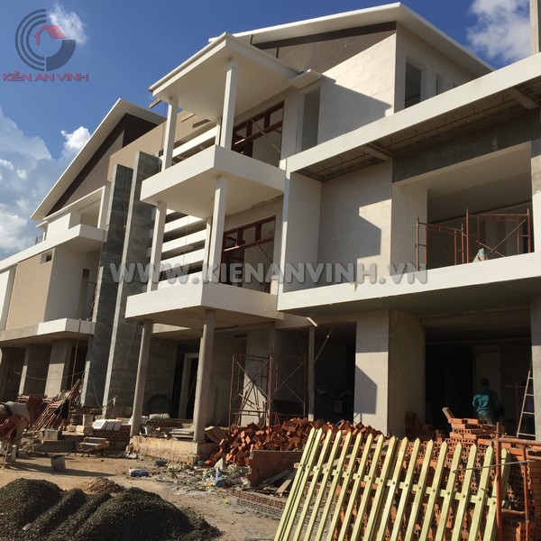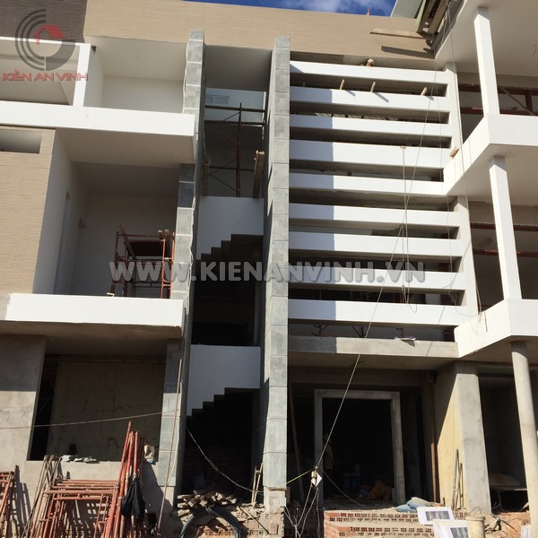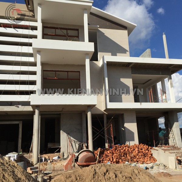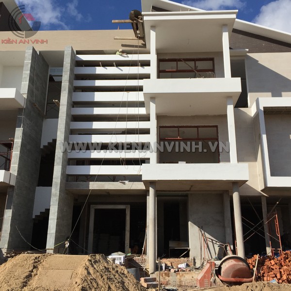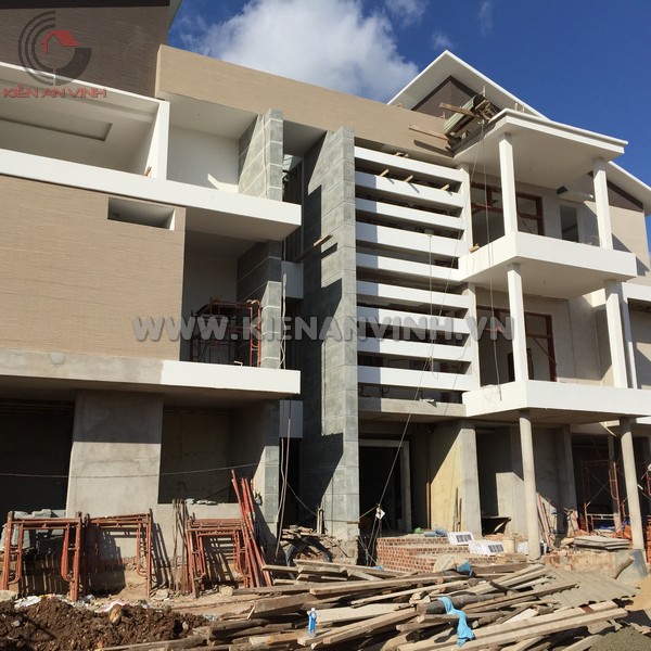 Một số hạng mục đang hoàn thiện nổi bật bao gồm việc ốp đá granite mặt tiền, điều này không những mang lại sự sang trọng mà còn khả năng chống chịu ngoại lực và chống bám bụi rất tốt.