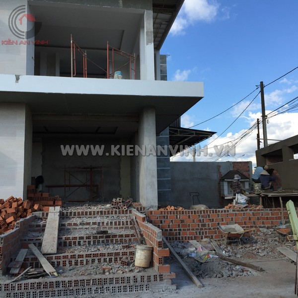 Khung bê tông cốt thép cùng tường gạch chính là xương sống cho toàn bộ biệt thự 3 tầng hiện đại văn phòng mái lệch, tạo nên sự bền vững và chuẩn bị cho các quy trình trang trí tiếp theo.