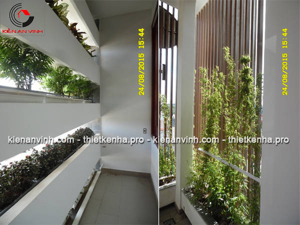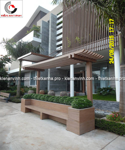 Song song đó là lắp dựng hệ lam gỗ nhựa, vừa có tác dụng trang trí vừa che nắng hiệu quả, tăng khả năng thông thoáng cho không gian bên trong đồng thời tạo nét kiến trúc khỏe khoắn cho mặt tiền.