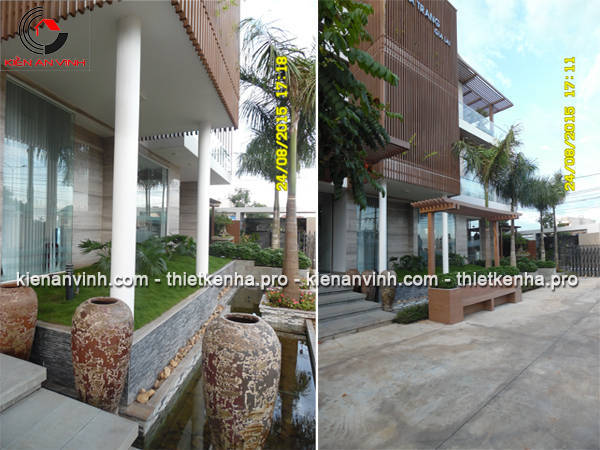 Thi công phần thô biệt thô biệt thự văn phòng hiện đại 3 tầng mái lệch có sân vườn & Nội thất văn phòng đẹp ở Gia Lai
