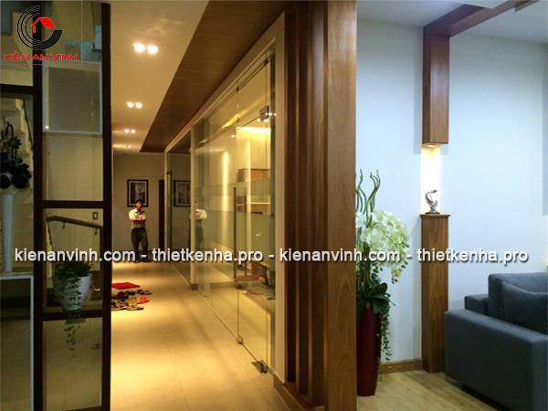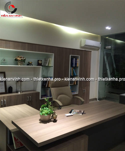 Việc hoàn thiện nội thất bằng hệ thống ốp gỗ nhập khẩu, bàn ghế cùng kệ tủ là công đoạn tạo nên sự tiện nghi và thẩm mỹ cho biệt thự văn phòng.