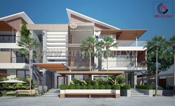 Phong cách kiến trúc hiện đại mái lệch của biệt thự văn phòng 3 tầng
