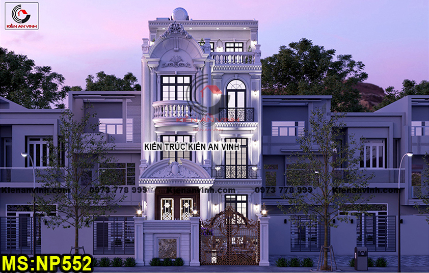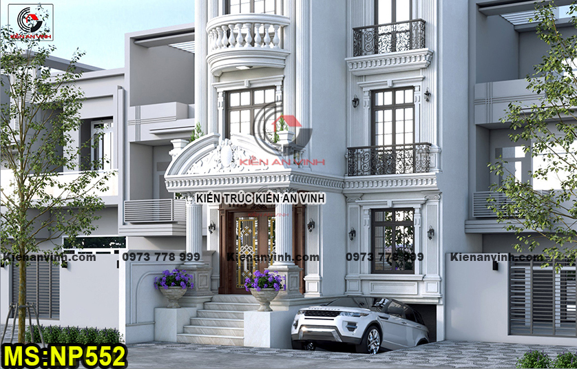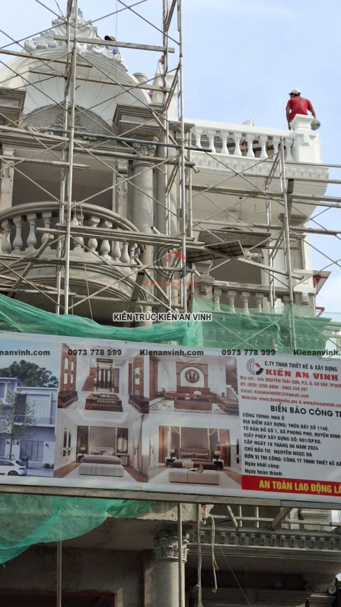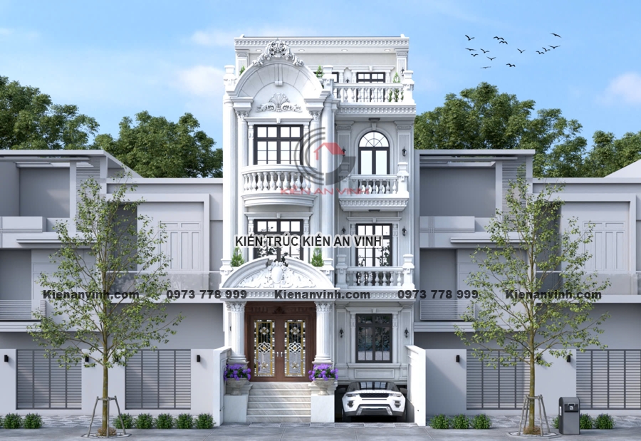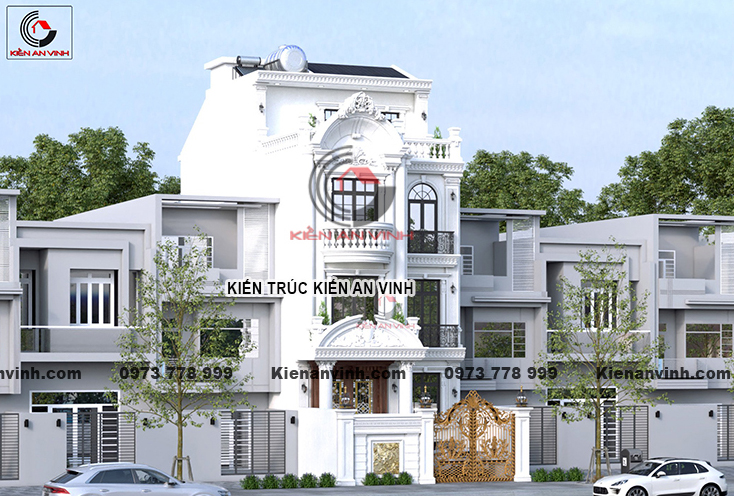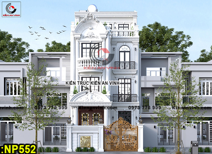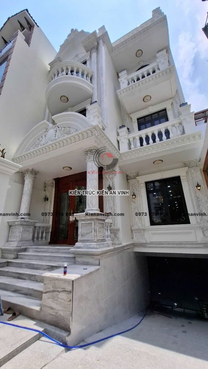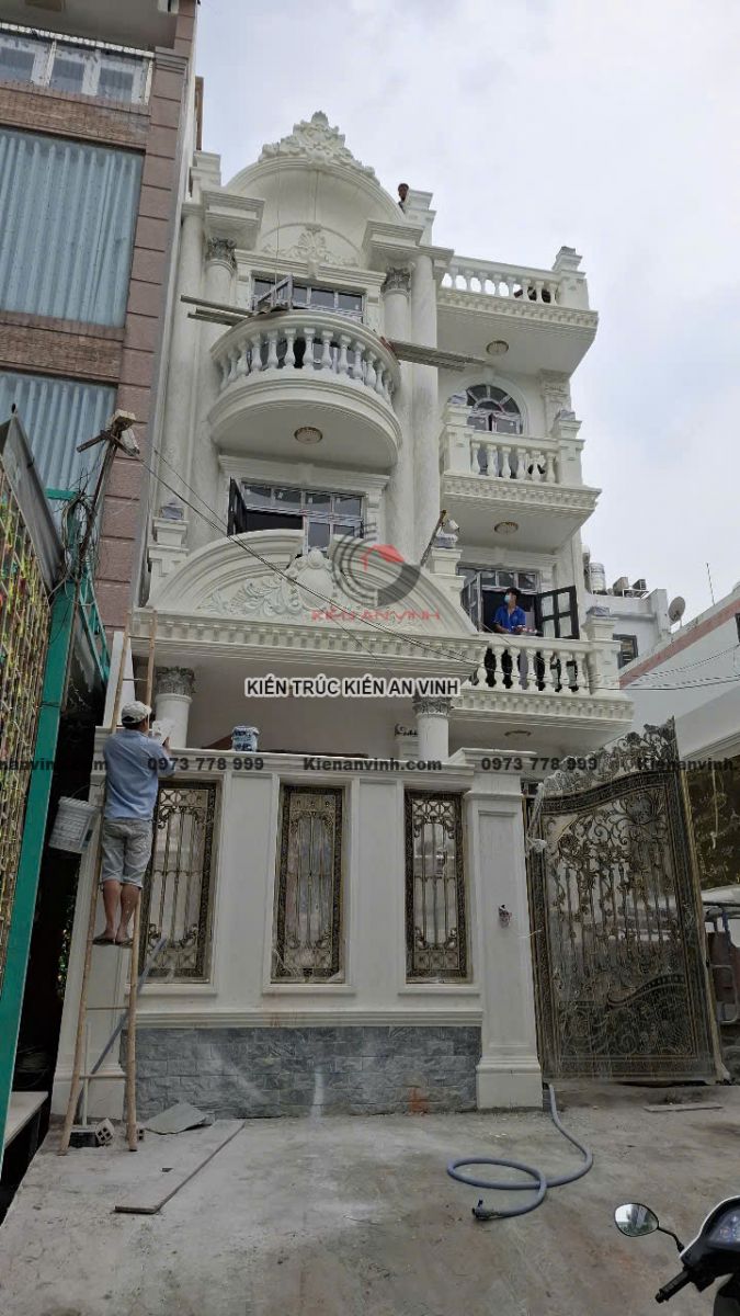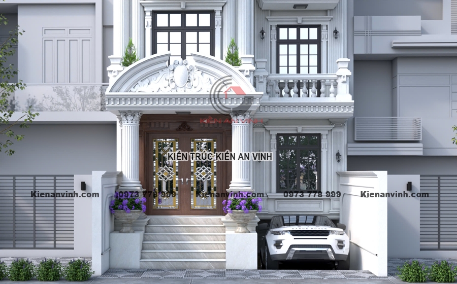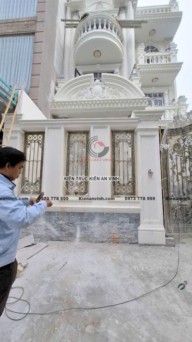 Sàn Vượt Nhịp 7m: Giải Pháp Kiến Trúc Cho Nhà Tân Cổ Điển 3 Tầng Có Mái Vòm Phù Điêu và Tầng Hầm
